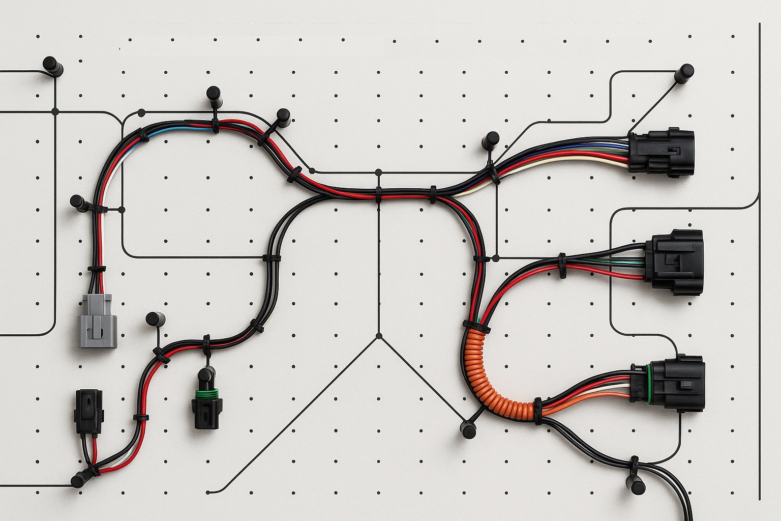 Hazır Kablo Grupları Temini: Talebe özel tasarlanmış, test edilmiş ve kullanıma hazır düşük gerilim kablo setlerinin (harness) teminini sağlıyoruz. Bu sayede üretim süreçlerini hızlandırıyor ve montaj verimliliğini artırıyoruz.